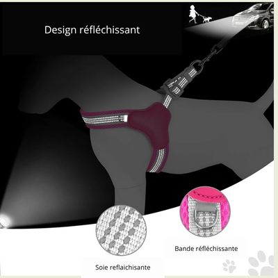 Ces harnais respirants en maille offrent un trÚs bon confort tout en assurant une bonne sécurité grùce à ces éléments réfléchissants en nylon et ces boucles antidérapantes. Que vous ayez un petit Yorkshire, un Carlin ou un Bouledogue français, vous trouverez la taille parfaite pour votre petit compagnon.